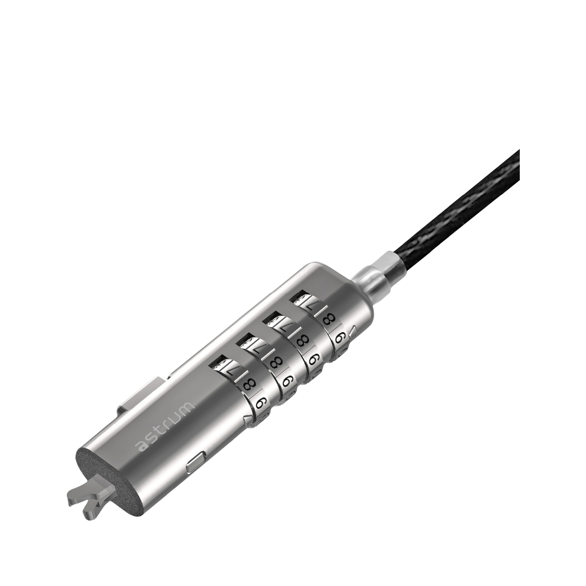 - Strong Steel Cable: The lock is attached to a durable steel cable, resistant to cutting, pulling, and other forms of physical attacks. The cable is long enough to allow flexible positioning but strong enough to secure your device firmly.