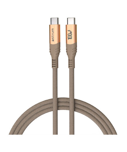 The Astrum VerveMesh VMCC100 USB-C to USB-C Cable allows power and performance to come together. It is designed for ultra-fast 100W Power Delivery, it charges laptops, tablets, and smartphones safely and efficiently. The built-in 5A E-Marker chip ensures stable current flow, while high-speed 480Mbps data transfer makes syncing effortless. Featuring premium braided construction and zinc alloy connectors, this 2.0m cable is built to last—tested to endure over 10,000 bends. With high-conductivity copper cores, the VMCC100 delivers reliable power and performance every time.