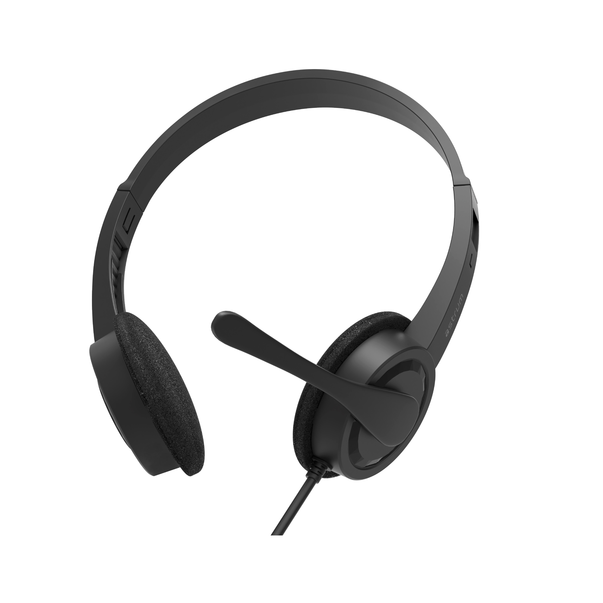 The Astrum HS240 is a lightweight, wired over-ear headset designed for clear communication and everyday use, featuring dual 3.5mm AUX plugs and a flexible boom microphone.
