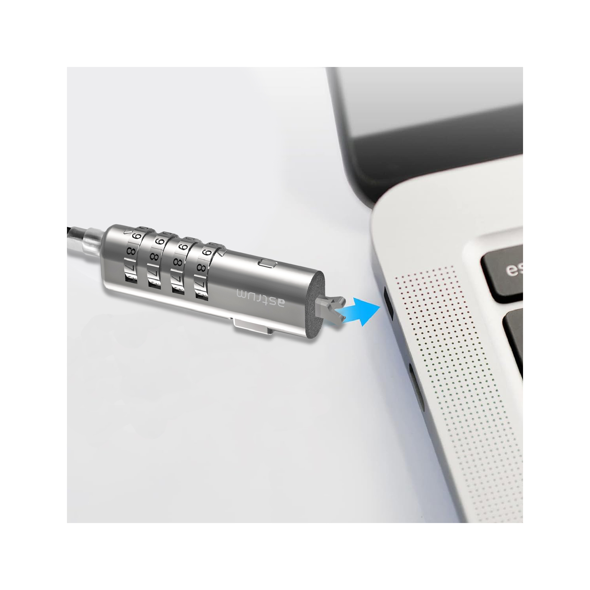- Strong Steel Cable: The lock is attached to a durable steel cable, resistant to cutting, pulling, and other forms of physical attacks. The cable is long enough to allow flexible positioning but strong enough to secure your device firmly.