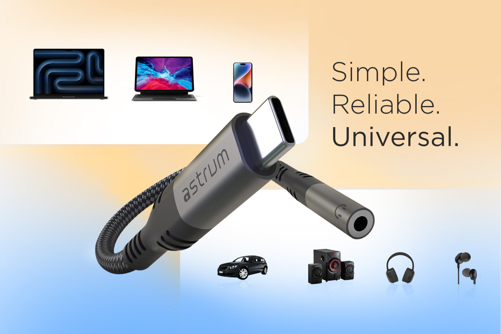 Experience high-resolution digital sound with the Astrum VMCA50 USB-C to AUX audio converter. Featuring a built-in HiFi DAC for 48kHz/16-bit clarity, this adapter ensures crisp, uninterrupted stereo audio with microphone support. Crafted for durability, its Verve Mesh braided cable and premium aluminum alloy connectors offer both strength and style. Ideal for USB-C devices without a headphone jack, it’s compact, reliable, and ready for daily use.