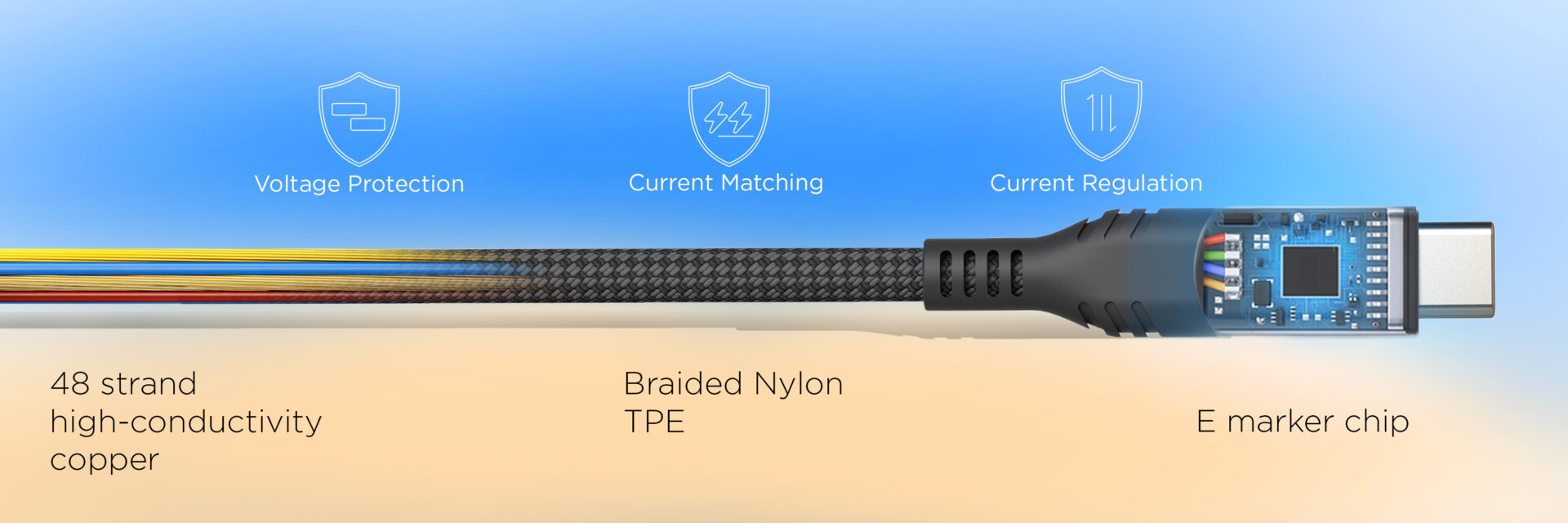 Its rugged nylon braided exterior is paired with a core of 48-strand high-conductivity copper wires, built to withstand over 15,000 bends. A premium zinc alloy housing adds a sleek, modern touch and long-term durability.